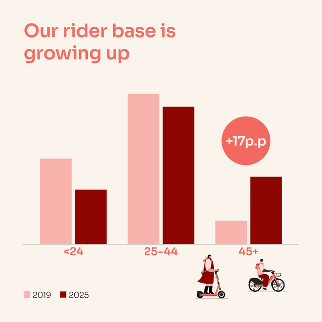 Voi’s 2025 Global User Survey reveals that riders aged 45 and older are the company’s fastest-growing segment, now making up 25% of its customer base.